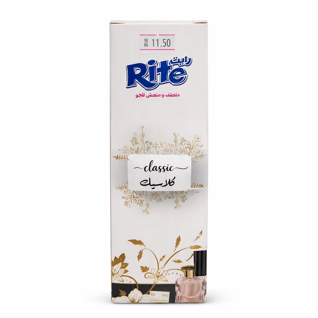 Rite Air Freshener – Classic 100 mlEnjoy long-lasting freshness with Right Classic Air Freshener. Its special formula provides an instant refreshing scent that fills your home or office with a pleasant and relaxing atmosphere for hours. Perfect for use in rooms, living areas, cars, and enclosed spaces. Comes in a convenient 100 ml bottle that is easy to use and suitable for all preferences. The ideal solution to eliminate unwanted odors and add a touch of cleanliness and freshness.