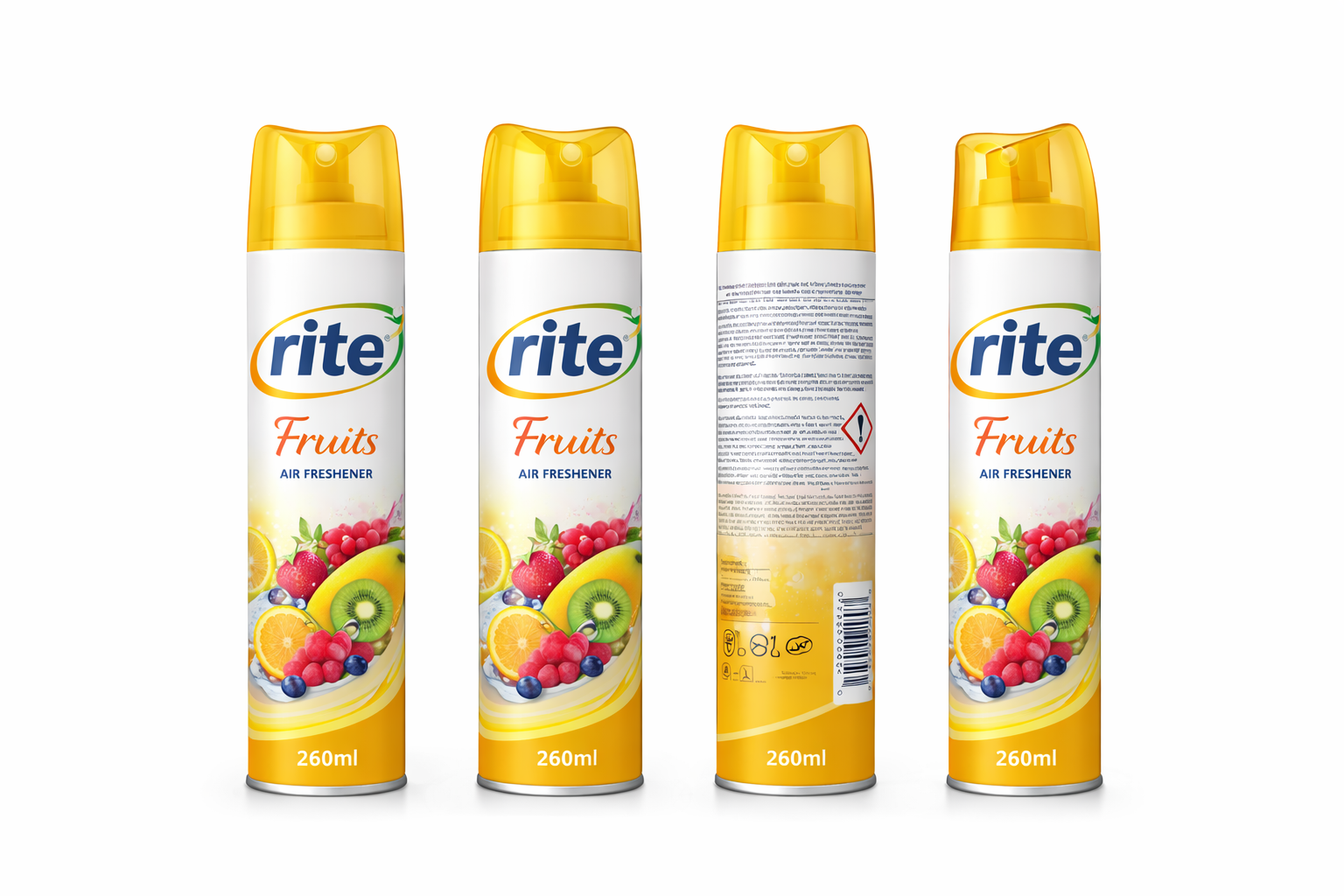 Rite Air Freshener 260ml – Fruits Model 1009Fill your space with freshness and energy with Rite Air Freshener in a refreshing fruity scent. Its special formula provides a long-lasting vibrant fragrance that brings a clean and lively atmosphere to any place. Comes in a convenient 260ml size and is easy to use, perfect for homes, offices, bathrooms, and cars. The ideal choice for a fresh and energetic environment all day long.