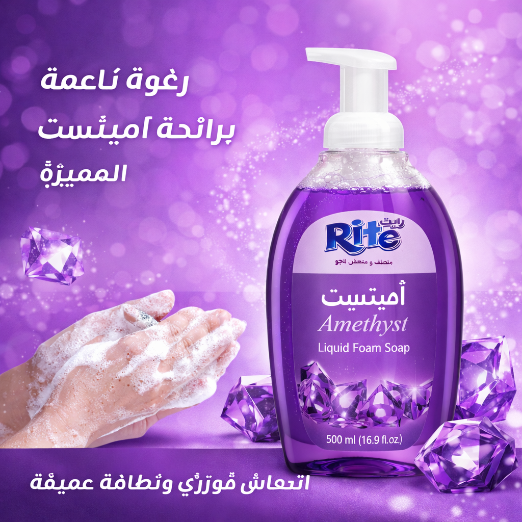 استمتع بتجربة تنظيف فاخرة مع صابون الرغوة السائل من رايت برائحة أميثست المميزة.